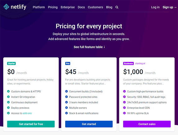 Netlify は静的サイトのホスティングサービスです。Starter、 Pro、 Business の 3 つのプランがあり、 Starter は無料で使うことができます。他のホスティングサービスに比べて無料で使える枠が大きいのが特徴です。