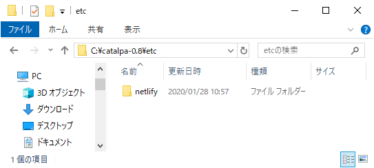 Catalpa を展開したフォルダーに etc