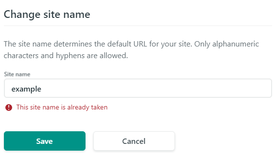 すでに他のユーザーが取得しているホスト名は使用できません。(This site name is already taken というエラーメッセージが表示されます。)