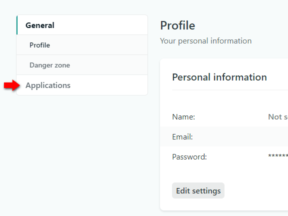 User settings ページが表示されたら左側のメニューから Applications をクリックします。